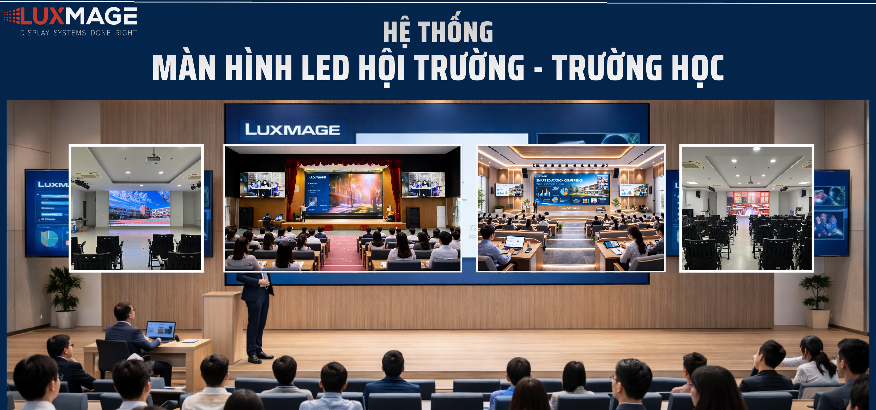 Luxmage lắp đặt màn hình LED hội nghị 12m² tại Trường Quốc tế Quận 7, hình ảnh sống động, chuyên nghiệp, tối ưu cho mọi hội nghị và sự kiện.