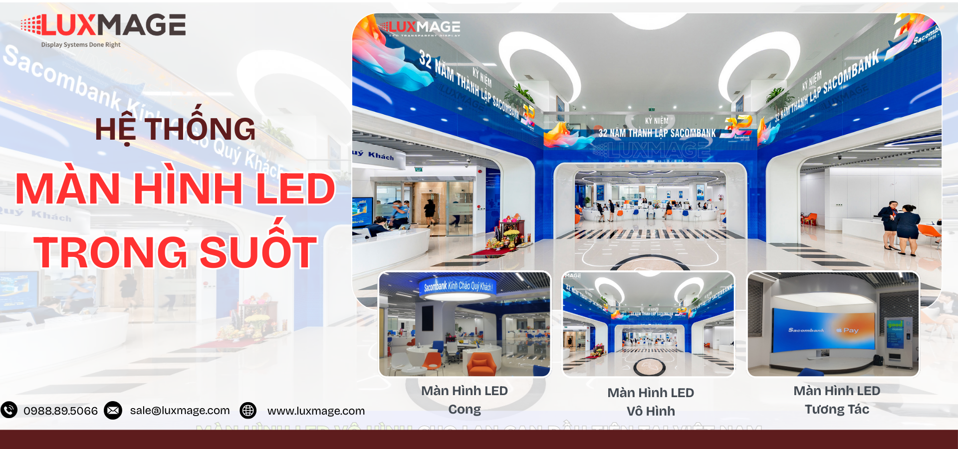 Chi tiếtMàn hình LED trong suốt uốn cong giúp Sacombank quảng cáo đột phá. Luxmage sẽ nêu tầm quan trọng của nó.